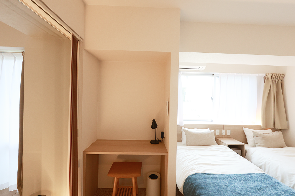 自然素材を活かしたシンプルで落ち着いた空間に、やわらかな灯りと温もりある木製家具が溶け込み、心地よい静けさを演出します。